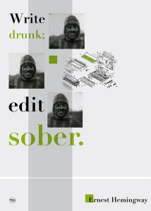 Anyway, a bit of a pause can be a good thing. - Write drunk, edit sober. Whether or not you take this advice literally, the point drives home the need to write without fear. Don’t clear up as you go along, especially if that means obsessing over the exact words and ending up writing nothing at all. When you’ve written the detail, you’re in a better place to mould it suitably. Set aside separate time for the editing process.